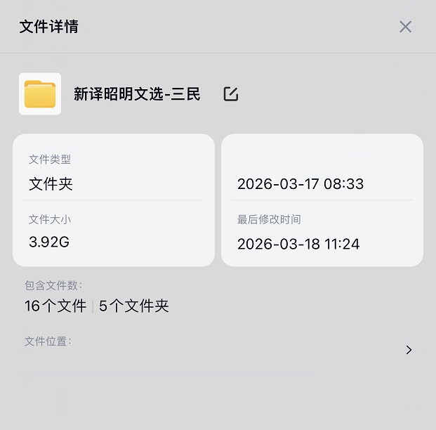 新译昭明文选-初版-高清版:就是闲鱼上的高清版本。分为高清版和优化版。优化版是我对高清版进行了处理,更锐利,对比度更高,并且花费时间增加了目录,更适合墨水屏设备或平板阅读(因为我的墨水屏平板打开高清版就闪退);高清版体积大无目录。这个版本质量一般,模糊的页面我尽力去优化,但还是有一些页面人眼识别困难,另外还有缺页的情况,可以猜测道的“卷名”页空白页我尽力进行补充,但有内容的页实在是无能为力。
